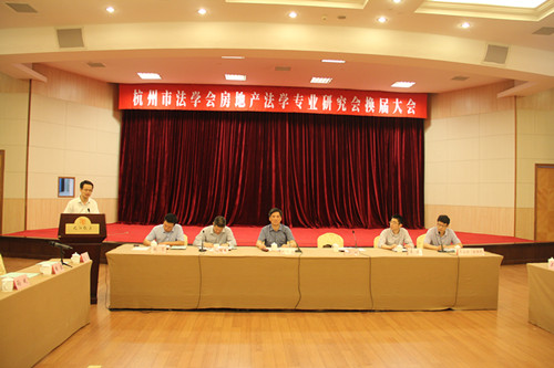 2015年5月30日下午,杭州市法学会房地产法学专业研究会在之江饭店隆重举行换届大会。杭州市法学会专职副会长兼秘书长刘殿豪、杭州市司法局副局长兼杭州市律师协会党委书记徐前出席会议并致辞。杭州市律师协会会长沈田丰、杭州市中级人民法院民五庭庭长李骏、杭州仲裁委员会副秘书长赵亮到场参加会议。杭州市律师协会副会长王立新主持会议。